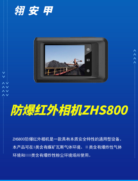 ZHS800防爆紅外相機(jī)是一款具有本質(zhì)安全特性的通用型設(shè)備。本產(chǎn)品可在I類含有煤礦瓦斯氣體環(huán)境、Ⅱ類含有爆炸性氣體環(huán)境和III類含有爆炸性粉塵環(huán)境場(chǎng)所使用。